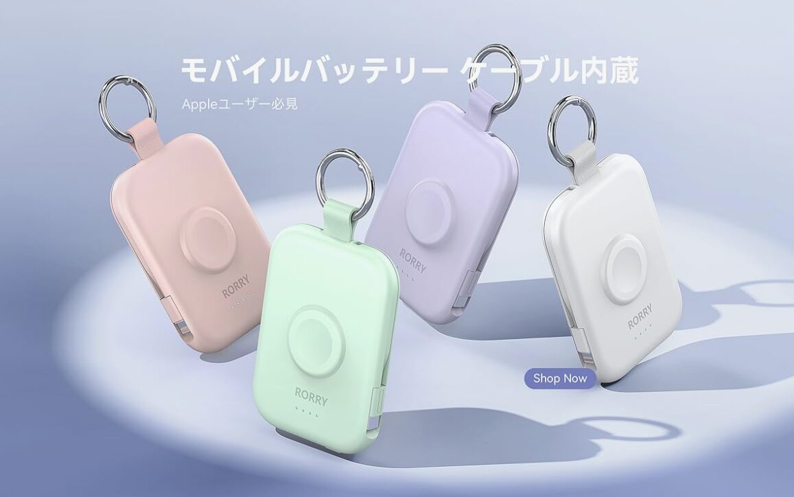 • 推しポイント: キーホルダー感覚で持ち歩けるサイズ感。メインのバッテリーとは別に「Apple Watch用のお守り」として忍ばせるのに最適。