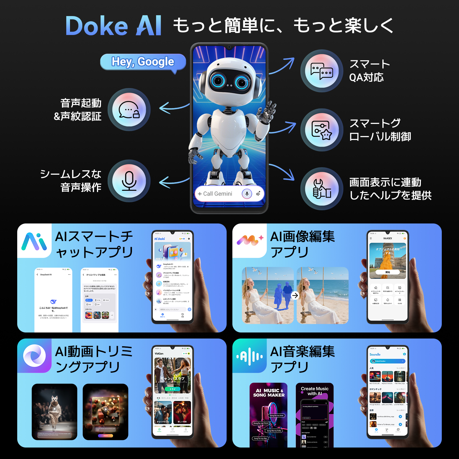 AI機能Doke AI搭載先進性あり。話題のAI機能を搭載しており、新しい体験を試す目的には面白い。