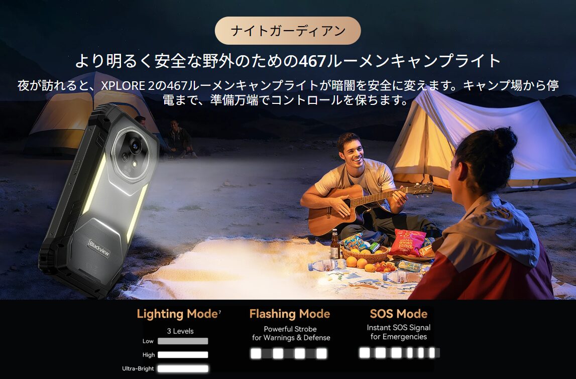 防水・防塵・耐衝撃を備えたタフネス設計に加え、強力なLEDライトと超大容量バッテリーを搭載したXPLORE 2。