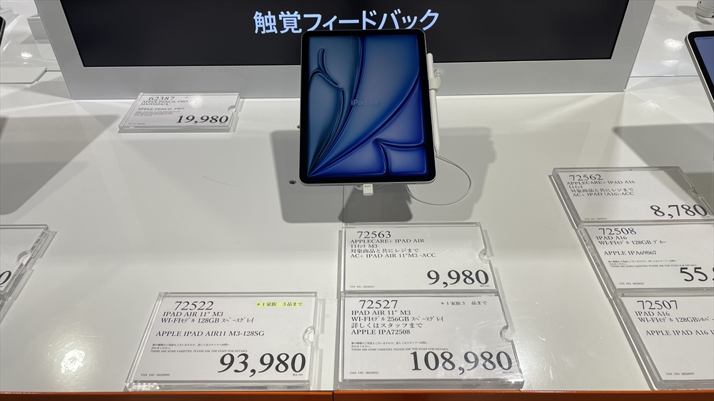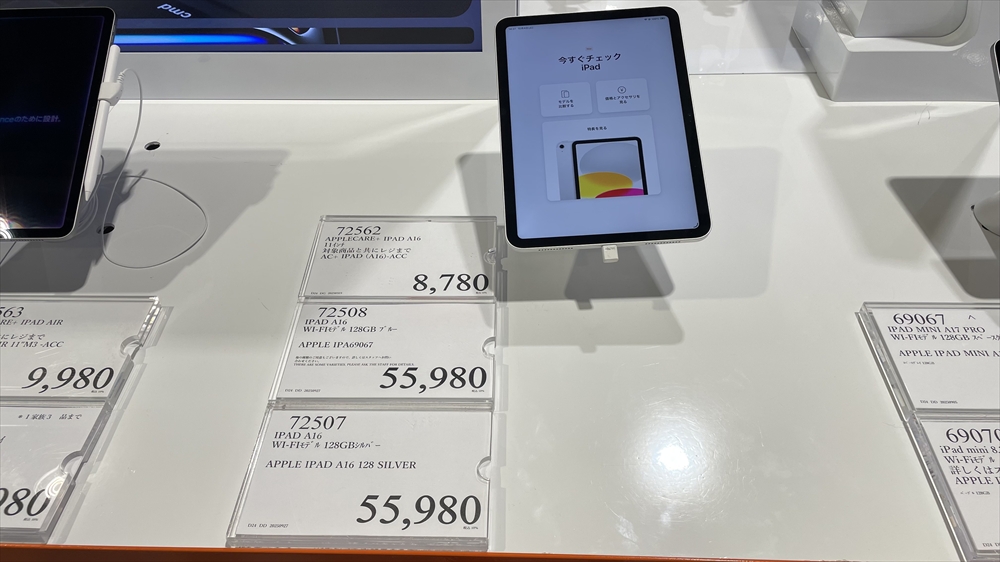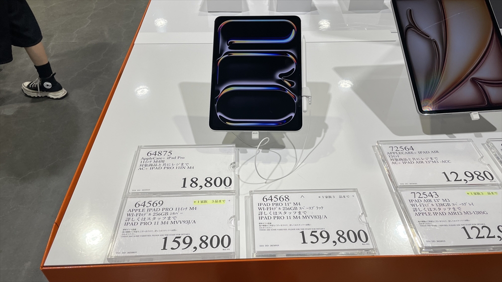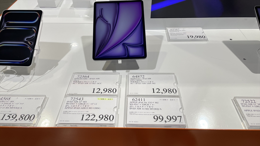 2024年11月には164,980円、2025年2月には157,777円で販売されていた第6世代のiPad proは今回の店では売り切れていました。最新にこだわらない方には超お得なモデルですので在庫など是非チェックしてみてください。
