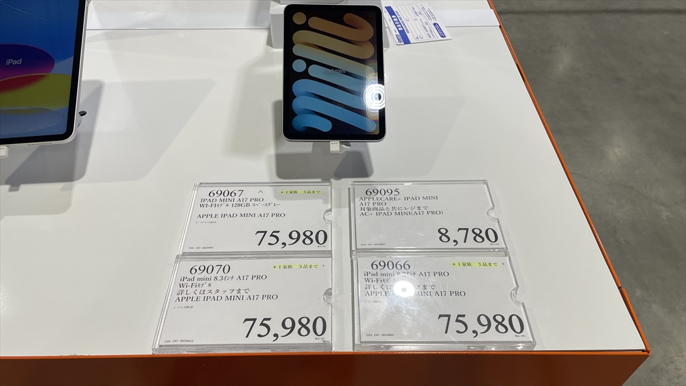 当サイトの定番となりましたコストコiPadの値段調査でちょっと変化がありましたのでお伝えします。2024年9月に行って来たばかりだったのですが16日に再度行く機会がありまして何となくいつも通りiPadコーナーに行くと・・・なんとiPad mini が店頭から消えていました。