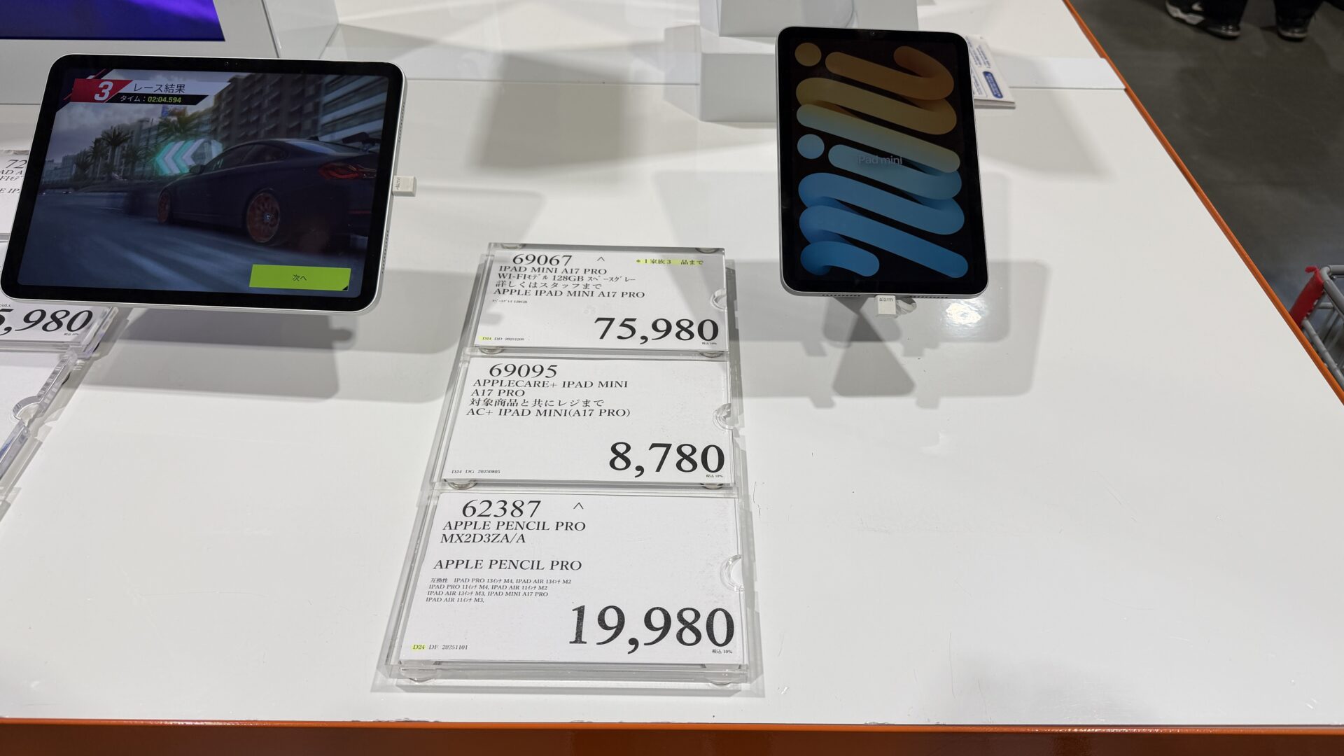 当サイトの定番となりましたコストコiPadの値段調査でちょっと変化がありましたのでお伝えします。2024年9月に行って来たばかりだったのですが16日に再度行く機会がありまして何となくいつも通りiPadコーナーに行くと・・・なんとiPad mini が店頭から消えていました。