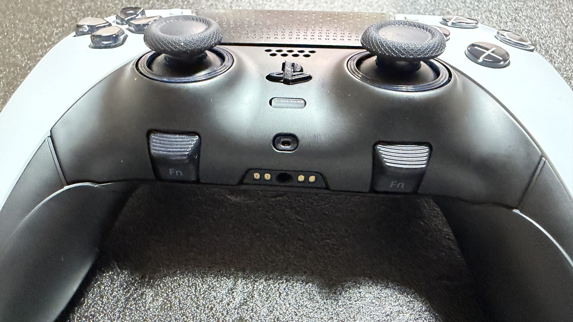 交換後のDualSense Edgeは、別物です!剥がれて見すぼらしかったラバーは完全に消え去り、まるでPS5を買ったときに付いてくる純正コントローラーのようなカラーリングと手触りになりました。