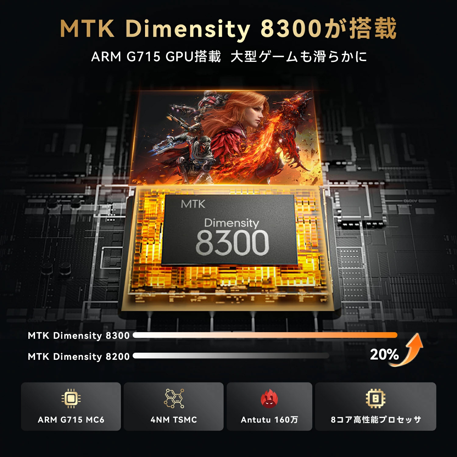 心臓部となるDimensity 8300は4nmプロセスの高性能チップで、処理速度と省電力性のバランスが優秀です。