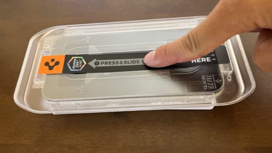 今回はケースがSpigenなので、ガラスフィルムもSpigenにしました。理由はケースに合わせて専用にフィルムを作られているからです。