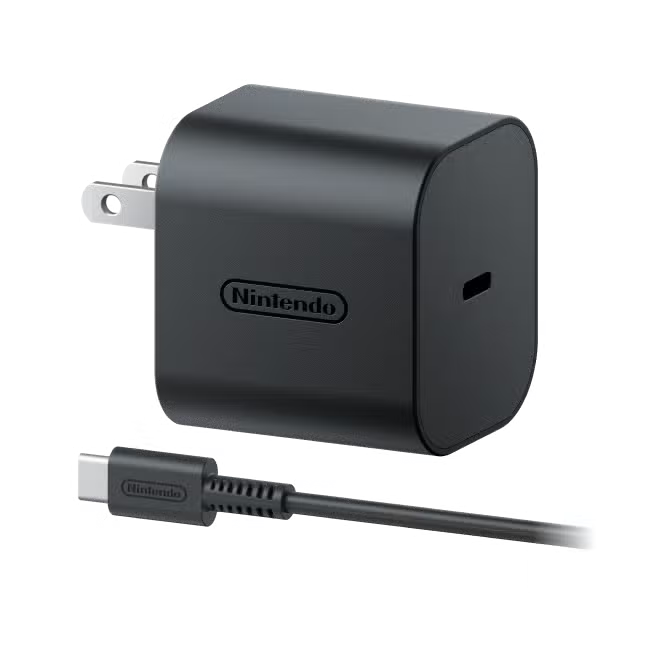 本体やドックに給電するためのACアダプターです。新型ではACアダプター本体とUSB-Cケーブルが分離できるセパレート式を採用しており、収納や持ち運びがよりコンパクトになりました。予備として持っておけば、ドックからアダプターを外す手間なく、寝室や出先で手軽に本体を充電できます。前世代のNintendo Switchでも使用可能な高い互換性を持ち、任天堂の厳しい品質基準をクリアした安定した電力供給を約束します。