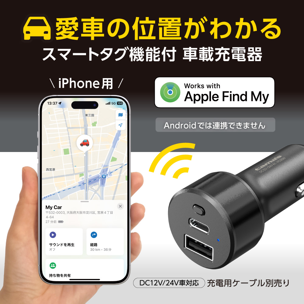 駐車位置をiPhoneで特定できる、多摩電子工業のスマートタグ機能付きカーチャージャーが登場